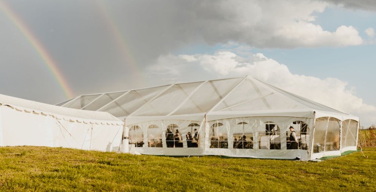 Think about tented receptions! Bonus points go to beautifully-lit spaces that keep the party going.