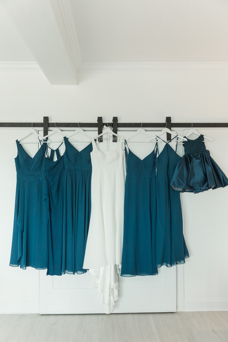 Bridesmaids' dresses—go with colors that match the season: cooler, sleeker tones that offer statement and elegance.