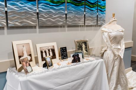 The couple displayed the grandmother of the bride's wedding dress from the early 1900s.