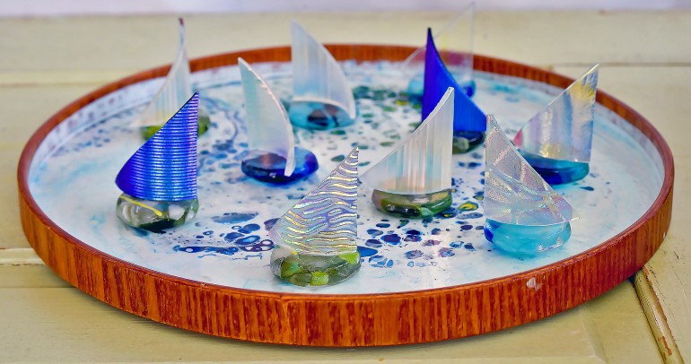 Additionally, if you’re looking for something new and unique to do for your bachelorette or bachelor party, sign up for a private class or workshop, with a variety of creative options in fused or stained glass! And don’t overlook Art in Glass for the wedding day itself. These stunning sailboats make a delightful offering for guest favors.