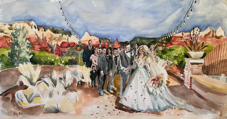 To commission Andy or Brittany’s live wedding painting services, visit www.celebrationpaintings.com or www.bybrittanybranson.com.