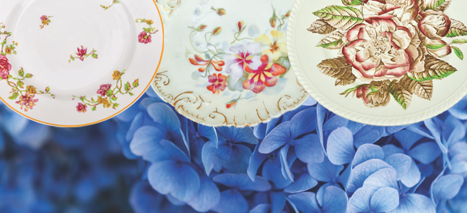 For the last decade or so, plain white dishes have been the norm for bridal showers and wedding receptions, but the boho and vintage influence has brought a whole new look to the table. Basic white will never go out of style, but for those who want something a little different, one has only to open mom's or grandmother’s china closet to find something truly beautiful.