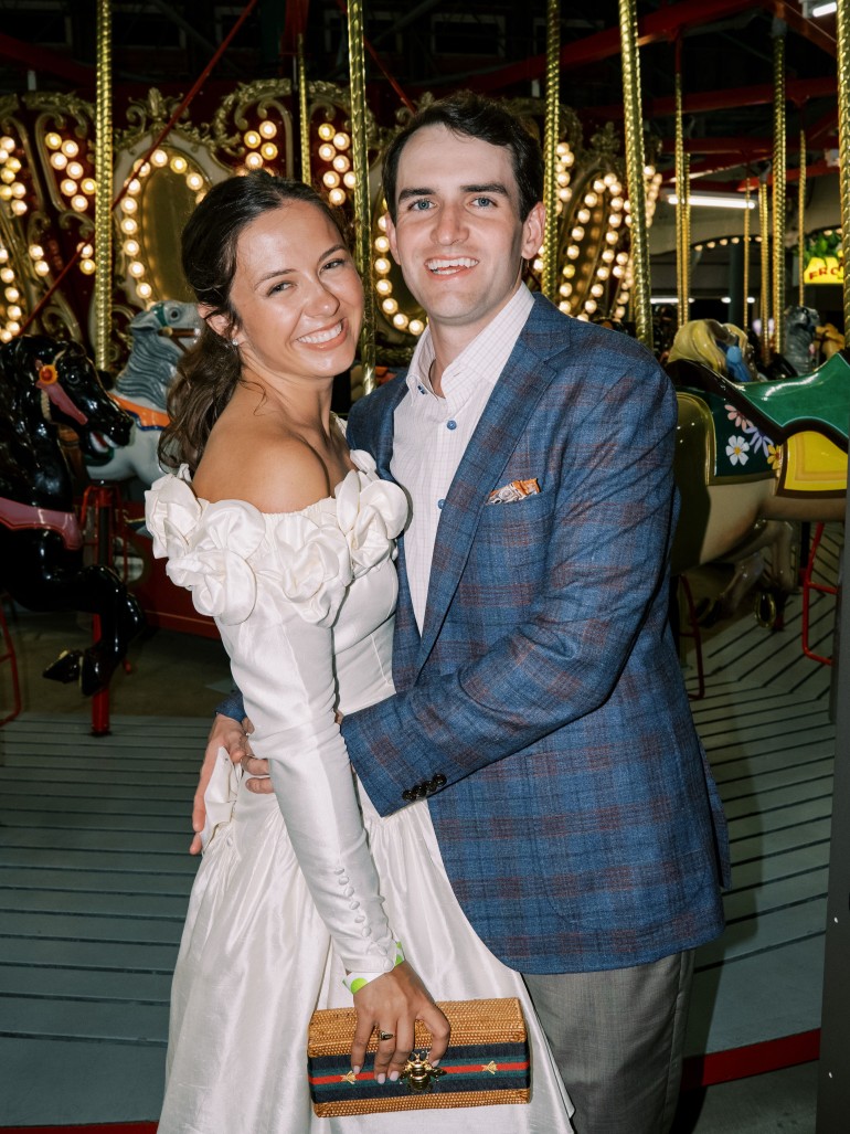 While there’s some debate as to whether or not Andrew knew who Sarah was before she asked him to join her for a Chi Omega date function —Space Jam at the infamous Charlottesville bar, Rapture—They both agree that it was essentially a blind date for them both. “As romantic a combination of cheap booze, sticky floors, and blaring music in a sea of alien costumes may seem, it’s tempting not to call that pivotal night a true date.”