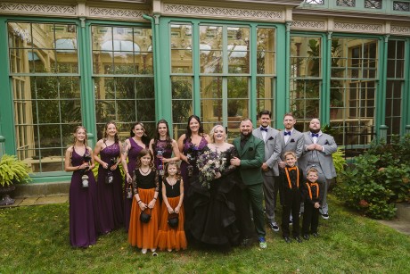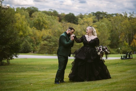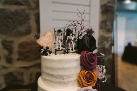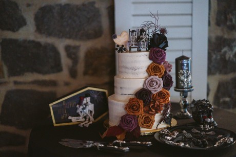 • Autumn — Halloween lovers, this is your season! Deep purples, black, rusty orange and forest green—it’s okay to go dark. Take it a step further with the themed concept and embrace the play on words with, “Till Death Do Us Part.”