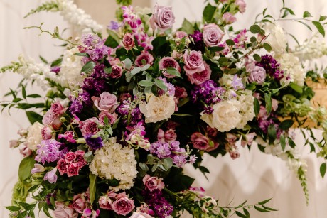 • Spring — A soft palette of pale purples, pops of magenta, and accents of green and white will keep those spring vibes going indoors and out. Choose seasonal stems that reflect the delicate freshness of local spring florals.