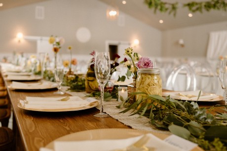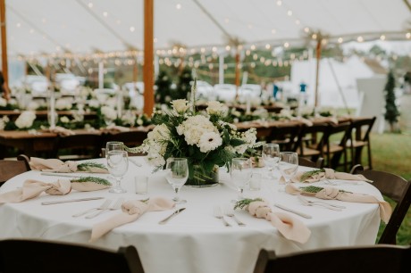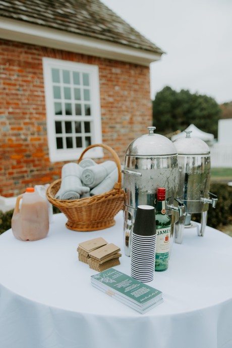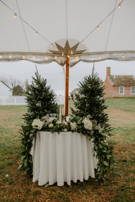 • Winter — Serve your guests spiked hot cider (for the adults) and offer a soft wrap to keep toasty on foggy, mysterious days. Reflect the natural rich greens and warm browns of the season in your palette for an opulent winter touch.