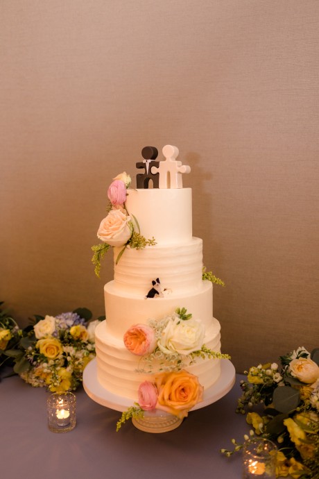 "We had so much fun incorporating the things we love into our wedding in small or big ways, and it just made it so meaningful. For example, I love puzzles and Ted and I will often do them, so having puzzle piece wedding cake toppers and a puzzle as a guest book just made it feel like we were being unapologetically us."