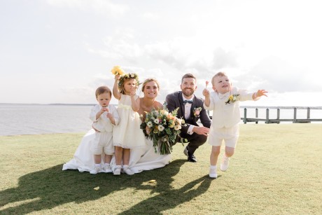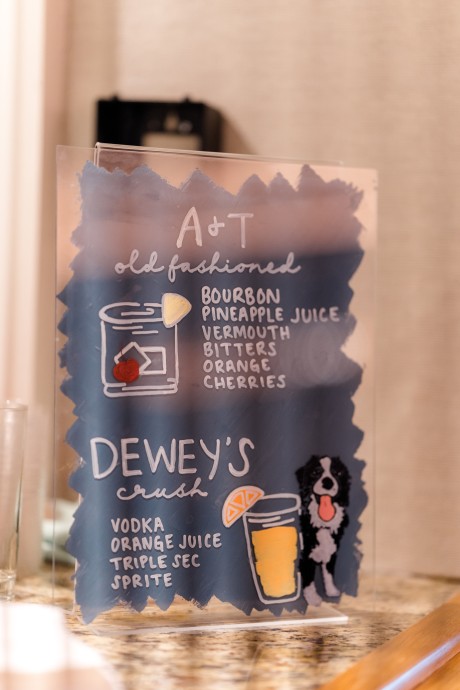 "We had a sketch artist who drew the bridal party and parents of the bride and groom throughout the ceremony. The pictures were then displayed so other guests could watch her and view her work. She was definitely a hit. During dinner, Ted and I also got on the mics and did a round of trivia. We had done Zoom trivia for our family and friends during the pandemic so we decided to do it one more time. This was a lot of fun as each table was a team, and it got people talking over a little competition."