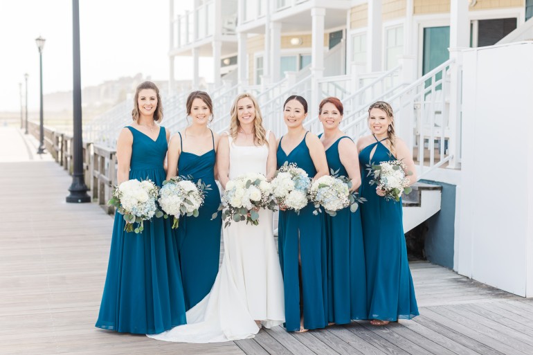 Bridesmaids' dresses—go with colors that match the season: cooler, sleeker tones that offer statement and elegance.