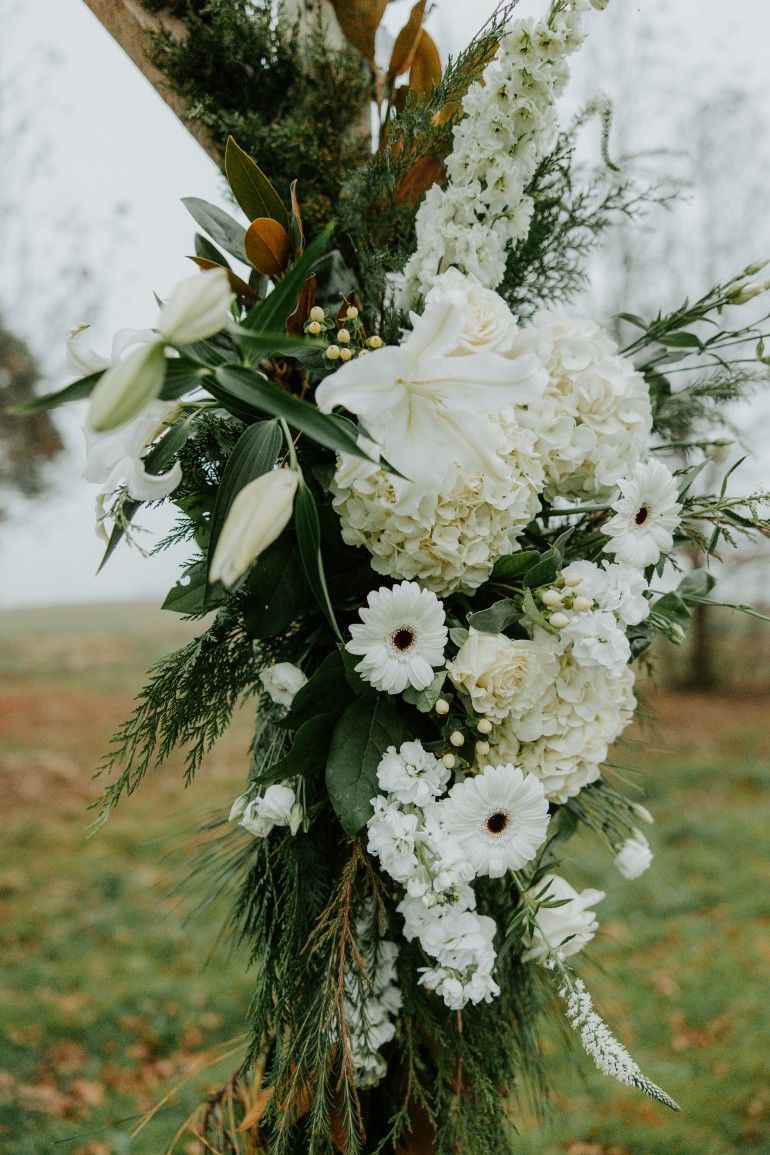 Confused about flower arrangements? Winter whites with a combination of pine detail is the perfect winter touch.